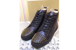 Super Max perfect Christian Louboutin High Top Gold Spike Black leather Sneaker(with receipt)